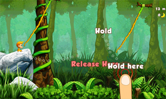 Iako su kontrole jednostavne, trebat će vam neko vrijeme da se priviknete. Da bi se uhvatili za lijanu potrebno je jednom dotaknuti ekran, a s istom radnjom je i puštate. Vrlo jednostavno, ali, ključ je u dobivanju osjećaja za tempo same igre jer je od presudne važnosti znati kad ćete pustiti lijanu. Ako ljuljanje sa lijane na lijanu izvedete savršeno, dobivate multiplikatore koji će uvećati broj pokupljenih banana. Tu su i razni power-upovi i boosteri koji se nalaze u trgovini ili u samom levelu, a mogu biti privremeni ili trajni. Neki od njih vam mogu znatno olakšati igru, kao primjerice onaj koji omogućuje pozivanje dvojice majmuna-frendova koji se motaju po levelu i spašavaju vas ako slučajno promašite lijanu.