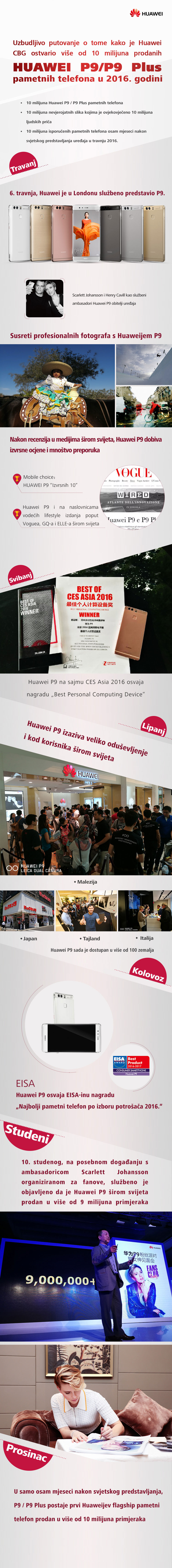 Tvrtka Huawei Consumer Business Group objavila je da je od predstavljanja pametnog telefona Huawei P9 / P9 Plus, širom svijeta do sad isporučila više od 10 milijuna primjeraka ovog uređaja. Ujedno, to je i prvi Huaweijev flagship uređaj koji je premašio brojku od 10 milijuna isporučenih uređaja, a njegov uspjeh predstavlja i prekretnicu za samu tvrtku i percepciju brenda širom svijeta. Unatoč usporenju rasta zabilježenom na globalnom tržištu pametnih telefona, Huawei P9 / P9 Plus uređaji postigli su zavidan uspjeh u posebno zahtjevnom premium segmentu, a postignut iskorak dokazuje i pozitivan smjer Huaweijevog poslovanja na mnogim svjetskim tržištima.