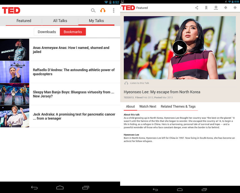 Ted je zasigurno jedna od najboljih i najviše puta skinutih aplikacija u Google Play trgovini, a ono što sadrži jesu snimke tisuće ljudi koji u kratkim govorima dijele svoja iskustva i ideje. Samo od nekih primjera su osobe koje su ostvarile zanimljive životne ciljeve, uspješno žive s bolestima ili znaju kako riješiti neke od najvećih problema s kojima se susreće današnji čovjek. Ili će vas samo naučiti kako poboljšati govor vašeg tijela. U jednostavnoj i fluidnoj aplikaciji svi govori su skupljeni i podijeljeni u tematske ili druge razne kategorije, a mnoštvo njih je i prevedeno na druge jezike, uključujući i hrvatski. Svaki video materijal može se skinuti na uređaj i pregledati kada vam internet nije dostupan. Ipak, možda ovdje više volimo samu ideju dijeljenja znanja na iznimno zanimljiv način, a ne samu aplikaciju, no u svakom slučaju ona je odlično izvedena i potpuno besplatna.