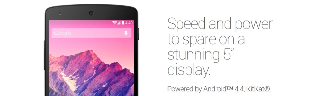 Kako je Googleov cilj kod ovih uređaja staviti softver u prvi plan, jednostavan cjelokupan dizajn je razumljiv, te dobro služi svrsi. Što se ekrana tiče, on sa svojih 445 piksela po inču i rezolucijom od 1080 x 1920 piksela neće nikoga ostaviti ravnodušnim te će kao takav odlično poslužiti za čitanje i suranje. Iako boje nisu (pre)zasićene kao na AMOLED-u od Moto X-a, zaslon je balansiran s dovoljno svjetline, oštrine i preciznosti, a sve je dobro zaštićeno Corning Gorilla Glassom 3. Što se tiče sirove snage, Nexus 5 je ima sasvim dovoljno. Pokreće ga četverojezgreni, 2.3 GHz Krait 400 procesor a za grafiku se brine Adreno 330 GPU. Uz to sve, mobitel ima 2 GB RAM memorije, a ako je vjerovati Googleu, to je 4 puta više nego što KitKat treba. Prema tome, u kombinaciji s “lakšim” i bolje optimiziranim Androidom 4.4, sve bi trebalo raditi besprijekorno i fluidno. Što se tiče korisničkog sučelja i vizualnog dojma, u novoj verziji Androida definitivno se vidi modernizacija i odmicanje od šarenila – sve je posvijetljeno, spljošteno, pojednostavljeno i uvećano, te djeluje vrlo svježe i suvremeno, čemu pridonosi i modifikacija sistemskog fonta Roboto koji je sada kompaktniji. Više o Androidu 4.4 KitKat pročitajte ovdje.