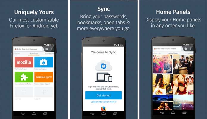 Firefox je jedan od najkorištenijih preglednika, a također nudi sve one osnovne mogućnosti sinkronizacije uređaja i pretraživanje interneta u anonimnom načinu. Ipak, nudi i par opcija koje Chrome ne posjeduje. Bitnija stavka koju će mnogi korisnici cijeniti je podržavanje Flasha, zatim je tu blokiranje svih reklama, a postoji i skrivena opcija za koju mnogi ne znaju – Reader Mode, koji se aktivira pomoću malene ikone u obliku knjige, a omogućava pregledavanje i čitanje teksta bez svih dodatnih sličica i grafika kojom stranica može biti natrpana. Za kraj, tu je opcija Guess Session mode koja je korisna kada na vašem uređaju netko drugi koristi Firefox ili posjedujete tablet koji koristi cijela obitelj. U tom slučaju, drugi korisnik može pretraživati internet bez pristupa vašim lozinkama, povijesti pretraživanja, ili oznakama. Kada je Guess Session gotov, svi novi podaci koji su u međuvremenu nastali se brišu.