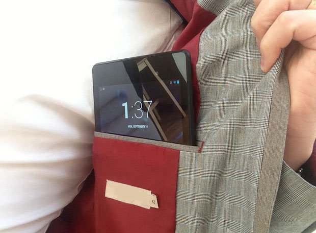 Zbog svoje veličine (točnije širine od 114 milimetara) Nexus 7 stane u unutarnji džep jakne bez većih problema, pa i u zadnji džep određenih modela hlača. Oni koji imaju bar malo iskustva s tabletima znaju kako se oni veći od 7″ ne mogu pospremiti nigdje osim u torbu ili ih morate držati u ruci, što baš i nije praktično ako ste jedan od onih muškaraca koji odbijaju nositi “pederuše” ili razne torbe preko ramena (poput nas). Dakle, žene ne bi trebale imati problema s prenošenjem tableta, ali muški će imati razlog više da izaberu kompaktnije uređaje poput Nexusa 7. Kompaktnosti pridonosi i debljina od tek 8.7 milimetara te težina od 290 grama, a sve to u kombinaciji s teksturiranom zadnjom stranom od mekanog materijala držanje jednom rukom čini sasvim ugodnim i ne umara.