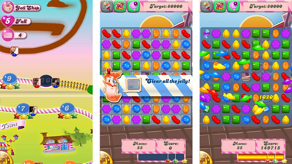 Kao što je već rečeno, u igri vam je primarni zadatak spajati tri ili više istih slatkiša kako biste ih uklonili s polja i dobili što je više moguće bodova. Kako napredujete kroz igru pred vas će se postavljati složeniji zadaci gdje morate ukloniti sav žele s nivoa ili primjerice progurati sastojke poput lješnjaka do dna polja. U pravilu ove razine postaju zahtjevnije kako napredujete kroz različite mape te će biti potrebno ovladati osnovnim vještinama stvaranja posebnih slatkiša koji pri aktivaciji eliminiraju čitav red vertikalno ili horizontalno, eksplodiraju te dva puta uklone sve susjedne slatkiše oko sebe ili kombinacijom tih posebnih slatkiša čiste sve više i više običnih slatkiša s mape.