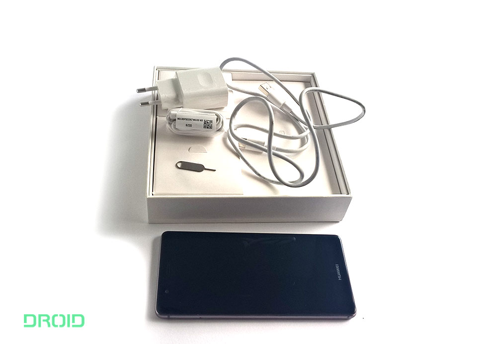 Kutija je izrađena od čvrstog teksturiranog kartona koji ulijeva nadu da se mobitel unutar njega neće tako lako oštetiti, a na dnu se nalazi i FSC logo pa moram pohvaliti Huawei što se brine za okoliš. Sadržaj kutije ne nudi ništa spektakularno, tu je metalni pin za vađenje SIM utora, adapter, USB Type C kabel te slušalice. Za razliku od Nexusa 5x, P9 dolazi s USB C kabelom koji s druge strane ima klasični USB Type B pa vam neće trebati nikakvi adapteri da mobitel priključite na računalo – što je pohvalno. Kabel i slušalice su prilično dobre kvalitete, iako o trajnosti ne mogu reći ništa pošto je mobitel kod mene bio samo tjedan dana.