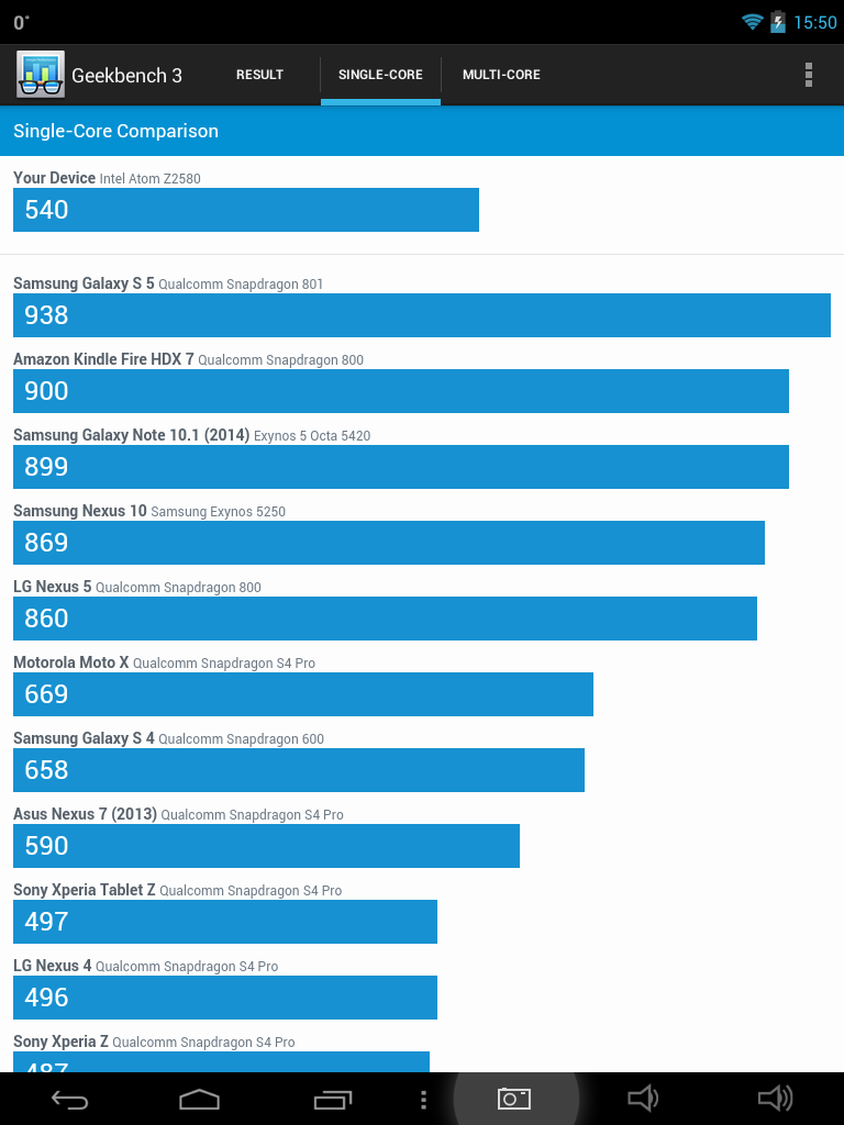 Baterija od 3750 mAh za jedan tablet ne ulijeva previše nade, ali ispostavilo se da pri smanjenom osvjetljenju zaslona možete očekivati jedan dan automonije pri aktivnijem korištenju. “Aktivnije korištenje” za nas podrazumijeva konstantno upaljen WiFi, pregledavanje i slanje mailova, pregledavanje društvenih mreža i dopisivanje, surfanje, igranje te korištenje navigacije. Ako tablet može cijeli dan izdržati ovakav “teror” baterije, onda će zasigurno moći izdržati dva-tri dana opuštenog korištenja. Benchmark testove odradili smo u aplikacijama AnTuTu i Geekbench: