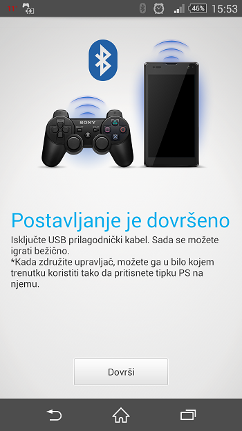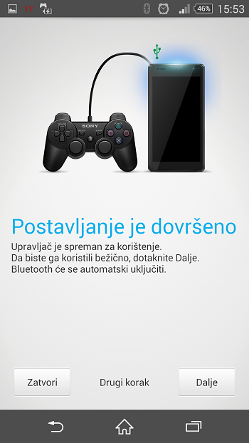 Cijeli proces traje svega par minuta, a koraci su sljedeći: Postavke -> Xperia -> DualShock 3 wireless controller -> How to connect a controller (kako spojiti kontroler). Potom slijedi upozorenje da kontroler spojite na mobitel preko USB OTG kabela. Pratite upute i dobit ćete obavijest da možete odspojiti kontroler, a na mobitelu će se upaliti Bluetooth – i to je to! OTG kabel vam više ne treba za buduća spajanja, već jednostavno uključite Bluetooth na mobitelu i na kontroleru držite pritisnutu PS tipku dok se sinkronizacija automatski ne obavi.