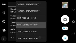Iako kamera nudi daleko više MP od svih konkurentskih uređaja na tržištu, ručni način rada i većina postavki temelje se na tek 8MP. Prebacivanjem u manual mode možete birati između više rezolucija i formata pa samim time postaviti kvalitetu fotografije na maksimalnih 20.7 MP, čime neke stvari gubite, a neke dobivate. Primjerice, gubite HDR opciju i fotografije su u 4:3 formatu umjesto u 16:9.